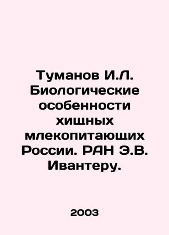Tumanov I.L. Biological features of predatory mammals in Russia. Russian Academy of Sciences E.V. Ivanter. In Russian /Tumanov I.L. Biologicheskie osobennosti khishchnykh mlekopitayushchikh Rossii. RAN E.V. Ivanteru. St. Petersburg. Science 2003. 448 p. We have thousands of titles and often several copies of each title may be available. Please feel free to contact us for a detailed description of the copies available. SKUalba5242062ed789f45.