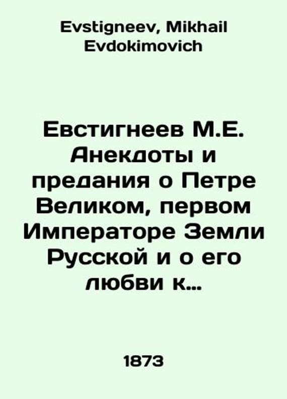 Evstigneev M.E. Jokes and legends about Peter the Great, the first Emperor of the Russian Land, and his love of the state. At 3 oclock in one book In Russian /Evstigneev M.E. Anekdoty i predaniya o Petre Velikom, pervom Imperatore Zemli Russkoy i o ego lyubvi k gosudarstvu. V 3 ch. v odnoy knige Manukhin Publishing House, 1873, 4, II, 7-90 p. We have thousands of titles and often several copies of each title may be available. Please feel free to contact us for a detailed description of the copies available. SKUalba525cff6baa6d631.