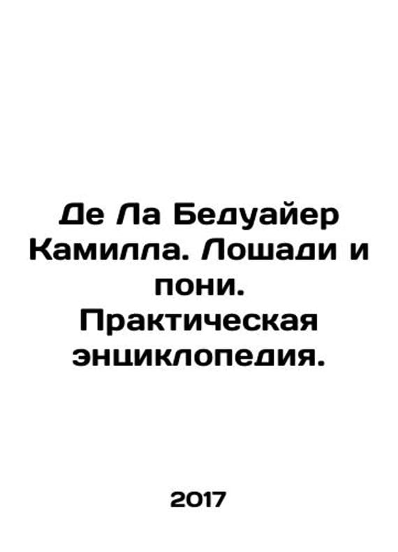 De La Bedouyer Camilla. Horses and ponies. A practical encyclopedia. In Russian /De La Beduayer Kamilla. Loshadi i poni. Prakticheskaya entsiklopediya. Series: 50 Steps into the World of Knowledge. Yuri Amchenkov. Moscow Makhaon. 2017. We have thousands of titles and often several copies of each title may be available. Please feel free to contact us for a detailed description of the copies available. SKUalba54b9d9a6ab94f61.