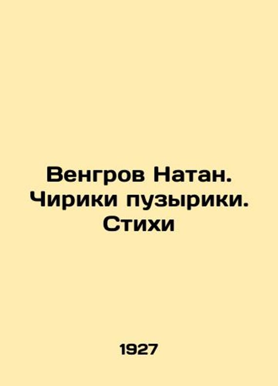 Hungarians Nathan. Tweets bubbles. Poems. In Russian /Vengrov Natan. Chiriki puzyriki. Stikhi Artists M. Genke, G. Echeistov, N. Shifrin. M.-L. State Publishing House 1927. 28 p. We have thousands of titles and often several copies of each title may be available. Please feel free to contact us for a detailed description of the copies available. SKUalba5550fdd59d7463c.