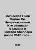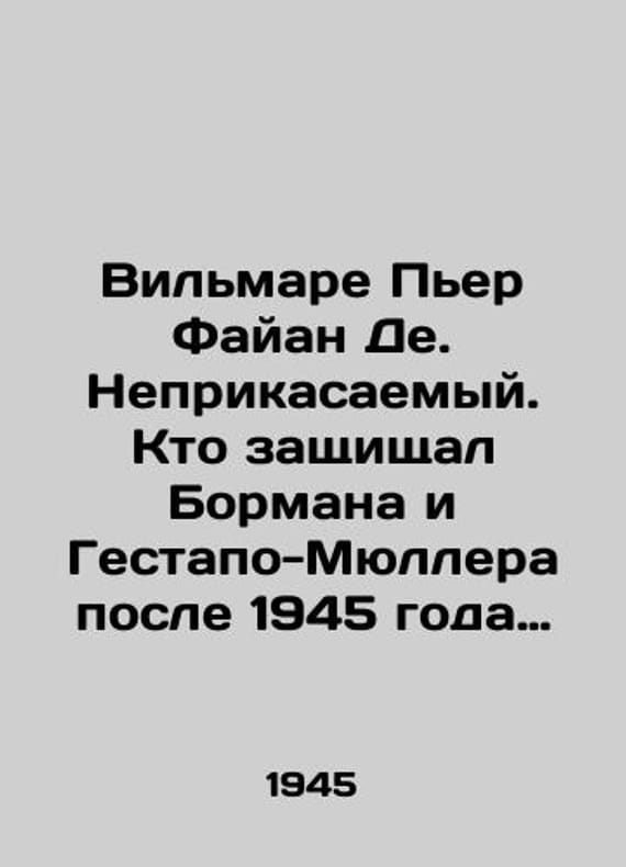 Wilmar Pierre Fayant De. Untouchable. Who defended Bormann and the Gestapo-Mueller after 1945? In Russian /Vilmare Per Fayan De. Neprikasaemyy. Kto zashchishchal Bormana i Gestapo-Myullera posle 1945 goda The book is the result of an investigation into events that covered much of the last century and focused on the war of intelligence agencies. These events, which took place on several continents, evoke a great many characters, one more extraordinary than the other. We have thousands of titles and often several copies of each title may be available. Please feel free to contact us for a detailed description of the copies available. SKUalba57aa8e494d9799c.