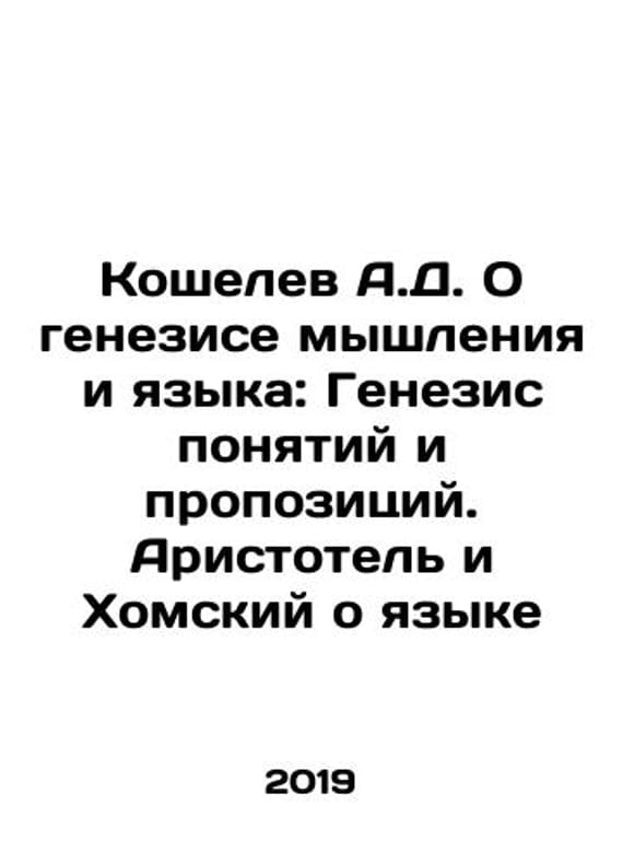 Koshelev A.D. On the genesis of thought and language: The genesis of concepts and positions. Aristotle and Chomsky on language In Russian /Koshelev A.D. O genezise myshleniya i yazyka: Genezis ponyatiy i propozitsiy. Aristotel i Khomskiy o yazyke M. YASK 2019. We have thousands of titles and often several copies of each title may be available. Please feel free to contact us for a detailed description of the copies available. SKUalba58b498298b4776c.