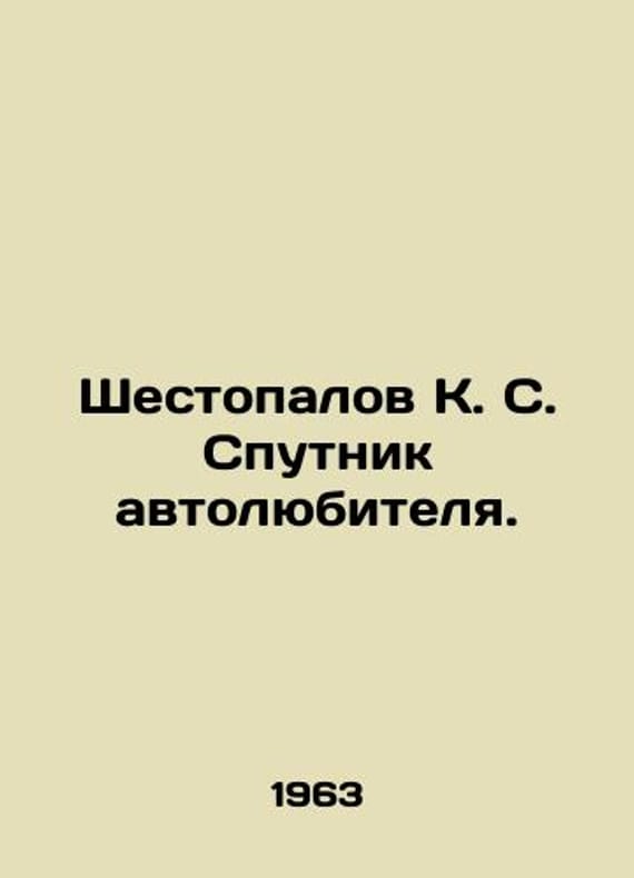 Shestopalov K. S. Sputnik motorist. In Russian /Shestopalov K. S. Sputnik avtolyubitelya. M. Physical Education and Sport 1963. We have thousands of titles and often several copies of each title may be available. Please feel free to contact us for a detailed description of the copies available. SKUalba5a5cb7b630abb99.