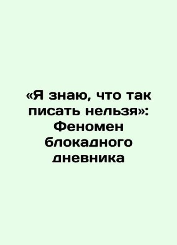 I know you cant write like this: The phenomenon of the blockade diary In Russian /«Ya znayu, chto tak pisat nelzya: Fenomen blokadnogo dnevnika Compiled by Anastasia Pavlovskaya, scientific editor Nikita Lomagin ill.: Publishing House of the European University in St. Petersburg 2022. 462s. We have thousands of titles and often several copies of each title may be available. Please feel free to contact us for a detailed description of the copies available. SKUalba5ea6ca71f2118f2.