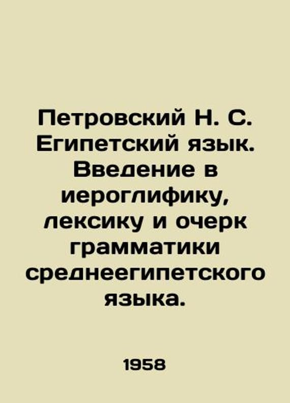 Petrovsky N. S. Egyptian Language. An introduction to the hieroglyphics, vocabulary and grammar of the Middle Egyptian language. In Russian /Petrovskiy N. S. Egipetskiy yazyk. Vvedenie v ieroglifiku, leksiku i ocherk grammatiki sredneegipetskogo yazyka. Edited by Academician V. V. Struve. L., From Leningrad University, 1958, 330 p. We have thousands of titles and often several copies of each title may be available. Please feel free to contact us for a detailed description of the copies available. SKUalba657155b50a12ea6.