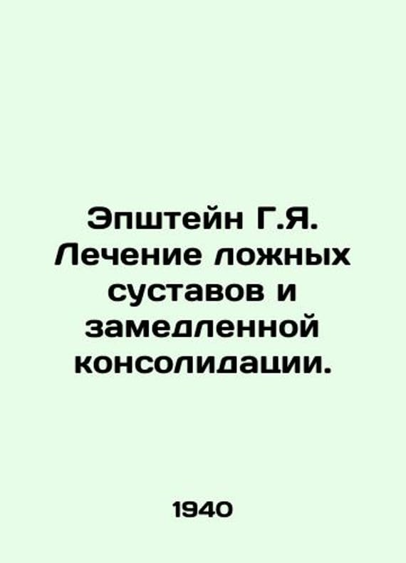 Epstein G. I. Treatment of false joints and delayed consolidation. In Russian /Epshteyn G. Ya. Lechenie lozhnykh sustavov i zamedlennoy konsolidatsii. Second edition, amended and supplemented. Leningrad Medgiz 1946..You are welcome to reach out to us for a detailed description of the copies currently available. Delivery of this book may take longer than usual including extended processing and pre-shipping time, no expedited shipping is available. Please advise us if you have a set date or a deadline to receive your order. SKUalb8d71ee62f033fa5e