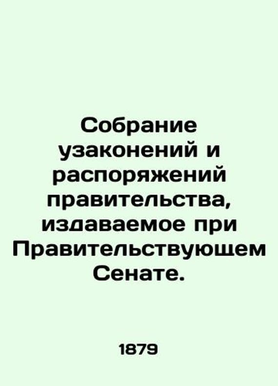 Assembly of Laws and Orders of the Government issued by the Government Senate. In Russian (ask us if in doubt)/Sobranie uzakoneniy i rasporyazheniy pravitel'stva izdavaemoe pri Pravitel'stvuyushchem Senate.. Short description: In Russian (ask us if in doubt).1879. The first half of the year. SPB of the Senate 1879. 868 p. We have thousands of titles and often several copies of each title may be available. Please feel free to contact us for a detailed description of the copies available. SKUalba66ddec9d9d701d0