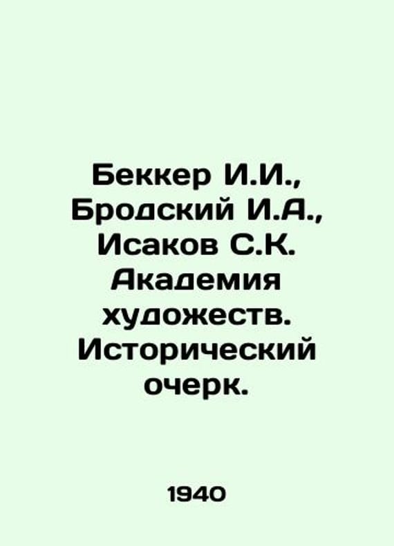 Bekker I.I., Brodsky I.A., Isakov S.K. Academy of Arts. Historical Essay. In Russian /Bekker I.I., Brodskiy I.A., Isakov S.K. Akademiya khudozhestv. Istoricheskiy ocherk. M. Art. 1940 year. We have thousands of titles and often several copies of each title may be available. Please feel free to contact us for a detailed description of the copies available. SKUalba69e2542dad47b4f.