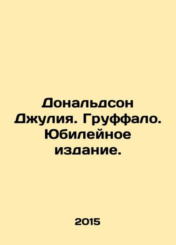Donaldson Julia Gruffalo Jubilee Edition. In Russian /Donaldson Dzhuliya. Gruffalo. Yubileynoe izdanie. Artist Axel Scheffler. M. Machines of Creation. 2015. We have thousands of titles and often several copies of each title may be available. Please feel free to contact us for a detailed description of the copies available. SKUalba6c86a70eb9dd8d9.