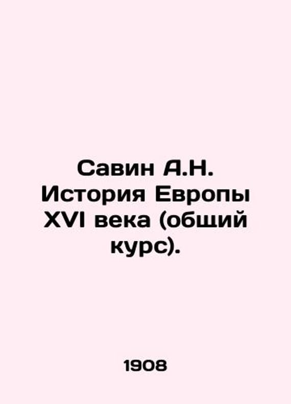 Savin A.N. The History of Sixteenth Century Europe (General Course). In Russian /Savin A.N. Istoriya Evropy XVI veka (obshchiy kurs). A summary of lectures given at the University and Higher Courses in the academic year 1908.9. Moscow Typo-Lithography by V.I. Tityaev. 1908. 304 p. We have thousands of titles and often several copies of each title may be available. Please feel free to contact us for a detailed description of the copies available. SKUalba6fadb548b0ca40a.