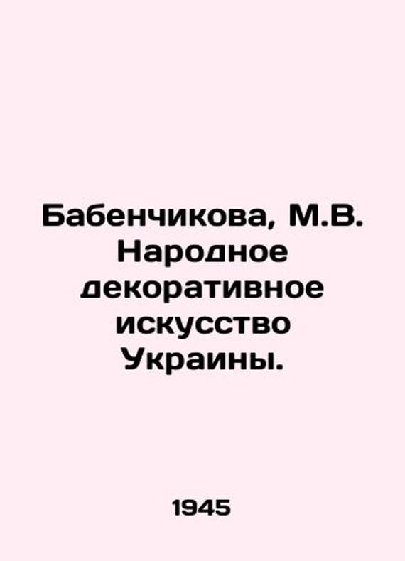 Babenchikova, M.V. National Decorative Art of Ukraine. In Russian /Babenchikova, M.V. Narodnoe dekorativnoe iskusstvo Ukrainy. M. State Architectural Publishing House 1945. We have thousands of titles and often several copies of each title may be available. Please feel free to contact us for a detailed description of the copies available. SKUalba798dac5030e0b8a.