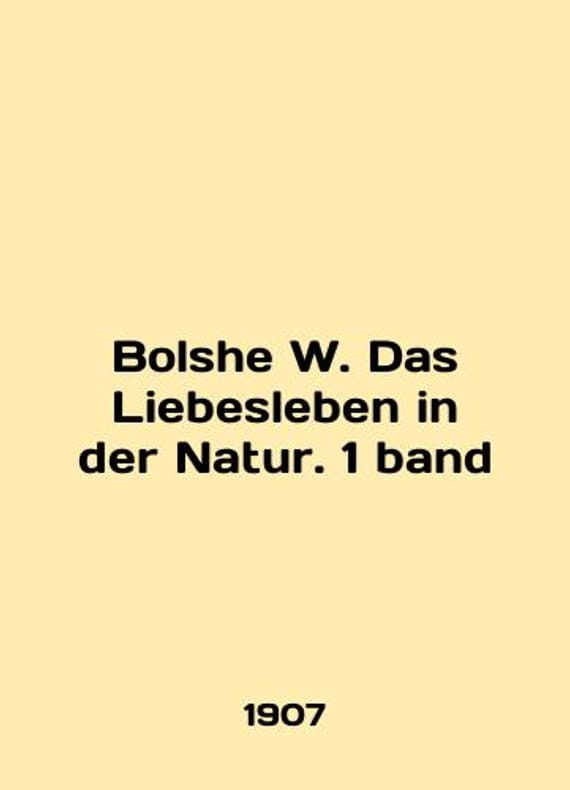 Bolshe W. Das Liebesleben in der Natur. 1 band In German /Bolshe W. Das Liebesleben in der Natur. 1 band Privacy in Nature, in German, First Volume Eine Entwickelungsgeschichte der Liebe Jena Verlag 1907. We have thousands of titles and often several copies of each title may be available. Please feel free to contact us for a detailed description of the copies available. SKUalba7b6ddf131ddcd94.