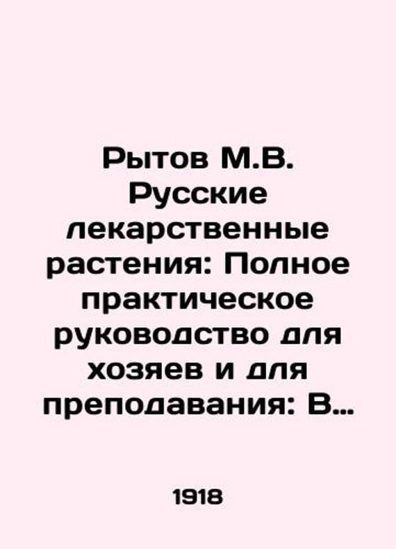 Rytov M.V. Russian Medicinal Plants: A Complete Practical Guide for Owners and Teaching. Two Volumes in One Binding In Russian (ask us if in doubt)/Rytov M.V. Russkie lekarstvennye rasteniya: Polnoe prakticheskoe rukovodstvo dlya khozyaev i dlya prepodavaniya. Dva toma v odnom pereplete Short description: In Russian (ask us if in doubt).The first volume contains descriptions of wild and cultivated medicinal plants their distinguishing features systematization of plants popular names cultural reflection and use in various fields of medicine. We have thousands of titles and often several copies of each title may be available. Please feel free to contact us for a detailed description of the copies available. SKUalb79f02a07a0ad8276