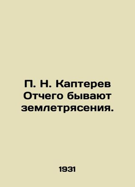N. Kapterev Why earthquakes happen. In Russian / N. Kapterev Otchego byvayut zemletryaseniya. Schoolboys Working Library Moscow: GUPI 1931. We have thousands of titles and often several copies of each title may be available. Please feel free to contact us for a detailed description of the copies available. SKUalba8356bc00bd21692.
