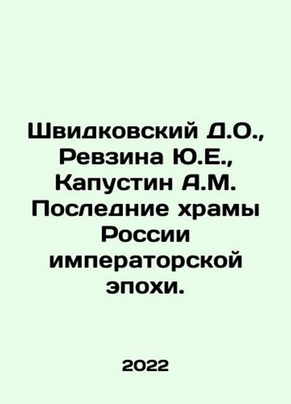 Shvidkovsky D.O., Revzina Y.E., Kapustin A.M. The last temples of imperial Russia. In Russian /Shvidkovskiy D.O., Revzina Yu.E., Kapustin A.M. Poslednie khramy Rossii imperatorskoy epokhi. M Architecture-S. 2022. 616 p. We have thousands of titles and often several copies of each title may be available. Please feel free to contact us for a detailed description of the copies available. SKUalba85bf54ad63e64fd.