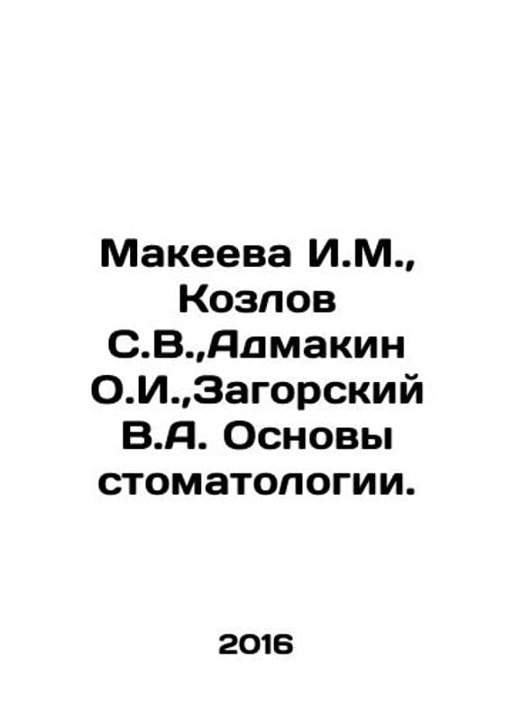 Makeyeva I.M., Kozlov S.V., Admakin O.I., Zagorsky V.A. Fundamentals of Dentistry. In Russian /Makeeva I.M., Kozlov S.V., Admakin O.I., Zagorskiy V.A. Osnovy stomatologii. M. Binom. 2016. 408s. We have thousands of titles and often several copies of each title may be available. Please feel free to contact us for a detailed description of the copies available. SKUalba88ccb68ffb3ce57.