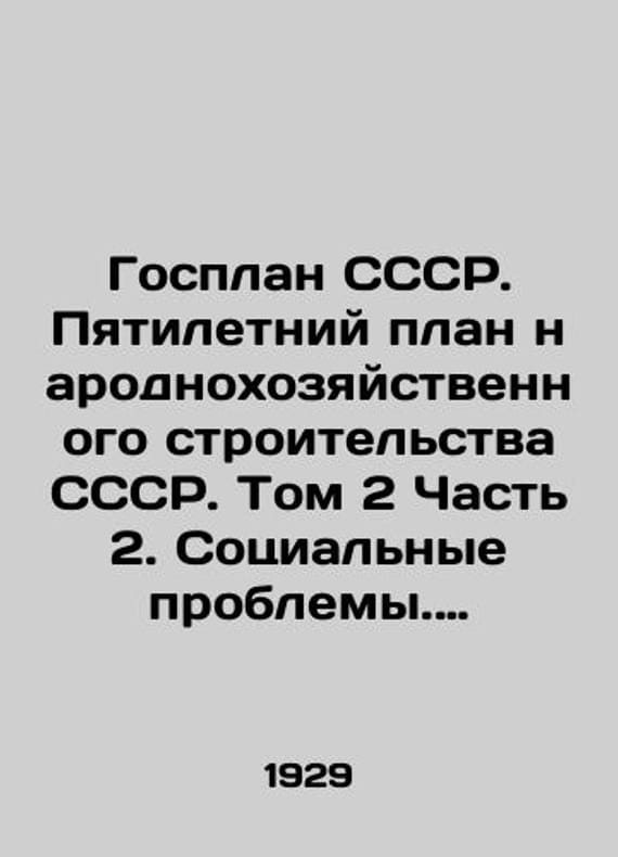The State Plan of the USSR. Five-Year Plan for National Economic Construction of the USSR. Volume 2 Part 2. Social Problems. Distribution Problems. Labor and Culture In Russian /Gosplan SSSR. Pyatiletniy plan narodnokhozyaystvennogo stroitelstva SSSR. Tom 2 Chast 2. Sotsialnye problemy. Problemy raspredeleniya. Trud i kultura M. Planning economy 1929. 418s. We have thousands of titles and often several copies of each title may be available. Please feel free to contact us for a detailed description of the copies available. SKUalba88f08d0aa6673df.
