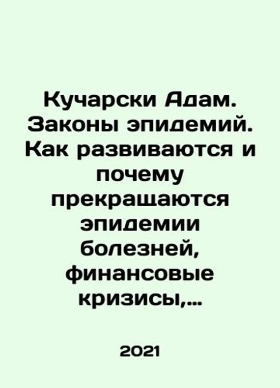 Adam Kucharski: The Laws of Epidemics. How and why epidemics of disease, financial crises, outbreaks of violence, and fashion trends develop and stop. In Russian /Kucharski Adam. Zakony epidemiy. Kak razvivayutsya i pochemu prekrashchayutsya epidemii bolezney, finansovye krizisy, vspyshki nasiliya i modnye trendy. M Sinbad 2021 384 pp. We have thousands of titles and often several copies of each title may be available. Please feel free to contact us for a detailed description of the copies available. SKUalba8c11f9cdd5ea9c7.