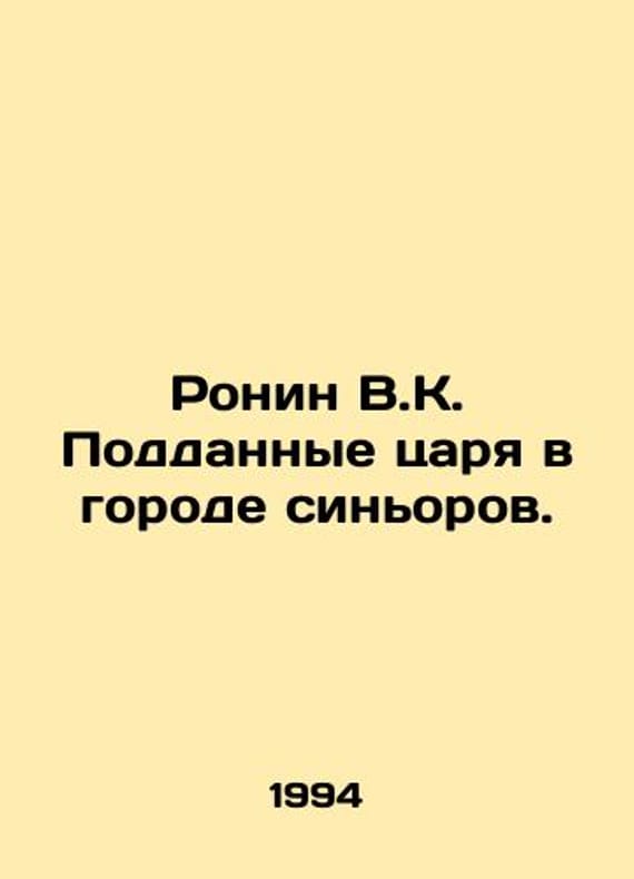 Ronin V.K. The Tsars subjects in the city of Siniors. In Russian /Ronin V.K. Poddannye tsarya v gorode sinorov. Moscow: Nauka. 1994. 296 p. We have thousands of titles and often several copies of each title may be available. Please feel free to contact us for a detailed description of the copies available. SKUalba8c77319bab53266.