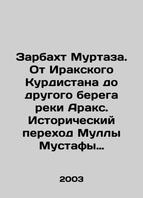 Zarbakht Murtaz. From Iraqi Kurdistan to the other side of the Arax River. Mullah Mustafa Barzanis historic crossing (spring 13261947). In Russian /Zarbakht Murtaza. Ot Irakskogo Kurdistana do drugogo berega reki Araks. Istoricheskiy perekhod Mully Mustafy Barzani (vesna 13261947 g.). Translated from Kurdish. Haurami A.S.: Predisl. Smirnova I. M.: St. Petersburg: Janus. 2003. 118 p. We have thousands of titles and often several copies of each title may be available. Please feel free to contact us for a detailed description of the copies available. SKUalba9219690bdfb27b0.