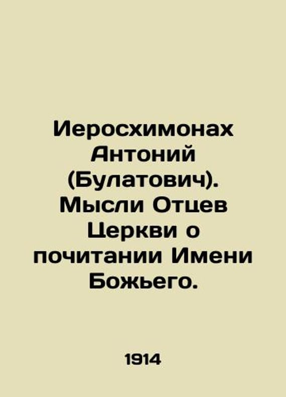 Hieroschimonk Anthony (Bulatovich). Thoughts of the Fathers of the Church on veneration of the Name of God. In Russian (ask us if in doubt)/Ieroskhimonakh Antoniy (Bulatovich). Mysli Ottsev Tserkvi o pochitanii Imeni Bozhego.St. Petersburg Edition: Confessor. 1914. 55 p. SKUalba9c46effef9fe821.