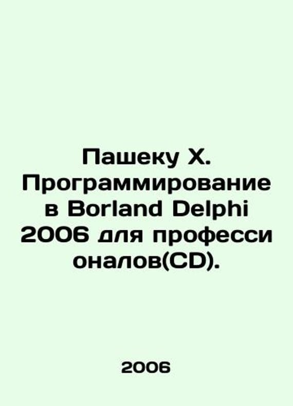 Pasheku X. Programming in Borland Delphi 2006 for professionals (CD). In Russian /Pasheku Kh. Programmirovanie v Borland Delphi 2006 dlya professionalov(CD). M. Williams 2006 943s. We have thousands of titles and often several copies of each title may be available. Please feel free to contact us for a detailed description of the copies available. SKUalba9cf25f656cd2348.