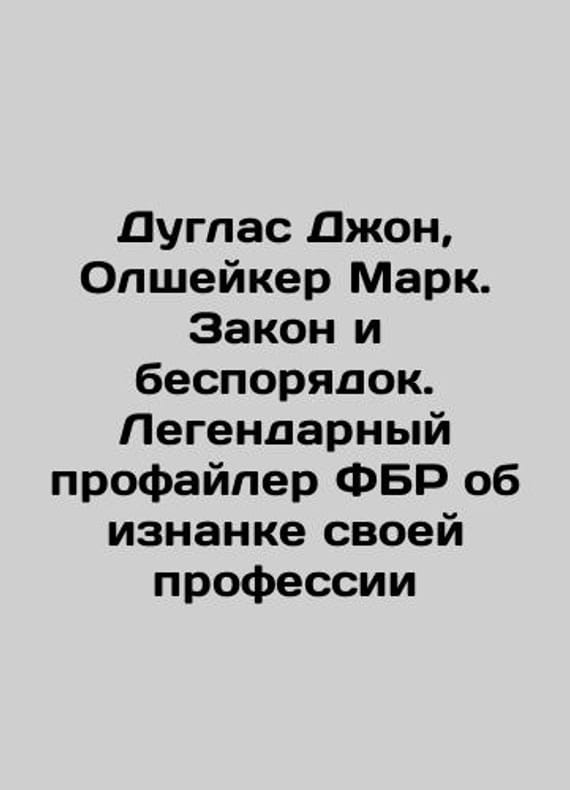 Douglas John, Mark Olshaker. Law and Order. A legendary FBI profiler on the inside of his profession In Russian /Duglas Dzhon, Olsheyker Mark. Zakon i besporyadok. Legendarnyy profayler FBR ob iznanke svoey professii Series: Reason Hunters. Real Investigations of M. Exmo Profilers 2023 544s.We have thousands of titles and often several copies of each title may be available. Please feel free to contact us for a detailed description of the copies available. SKUalbaa0eb8c79107fac2.