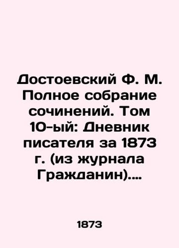 Dostoevsky F.M. Complete collection of essays. Volume 10: The diary of a writer for 1873 (from the magazine Citizen). Political articles. Critical articles. In Russian /Dostoevskiy F. M. Polnoe sobranie sochineniy. Tom 10-yy: Dnevnik pisatelya za 1873 g. (iz zhurnala Grazhdanin). Politicheskie stati. Kriticheskie stati. The Complete Collection of Works. Volume 10: The Writers Diary for 1873. We have thousands of titles and often several copies of each title may be available. Please feel free to contact us for a detailed description of the copies available. SKUalbaa287adbb449f062.