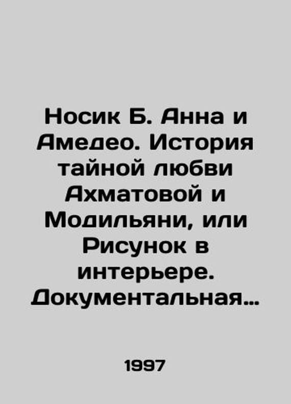 Nosik B. Anna and Amedeo. The Secret Love Story of Akhmatova and Modigliani, or Drawing in the Interior. A Documentary Tale. In Russian /Nosik B. Anna i Amedeo. Istoriya taynoy lyubvi Akhmatovoy i Modilyani, ili Risunok v interere. Dokumentalnaya povest. M., Raduga. 1997. We have thousands of titles and often several copies of each title may be available. Please feel free to contact us for a detailed description of the copies available. SKUalbaa40004250360398.
