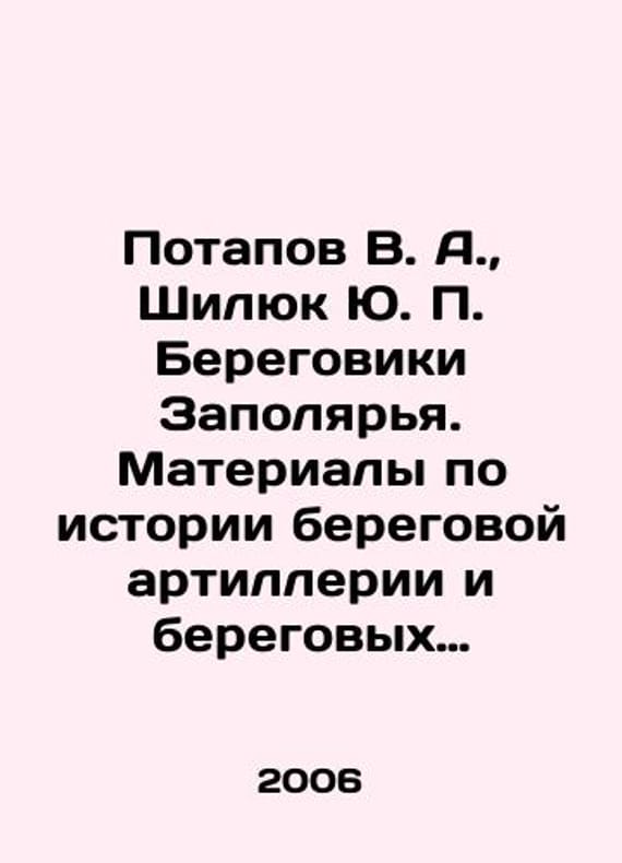 V. A. Potapov, Yu. P. Shilyuk. Materials on the history of coastal artillery and coastal rocket and artillery troops of the Northern Fleet In Russian /Potapov V. A., Shilyuk Yu. P. Beregoviki Zapolyarya. Materialy po istorii beregovoy artillerii i beregovykh raketno-artilleriyskikh voysk Severnogo flota Sevastopol, 2006.232 p. We have thousands of titles and often several copies of each title may be available. Please feel free to contact us for a detailed description of the copies available. SKUalbaa586a880f0a0575.