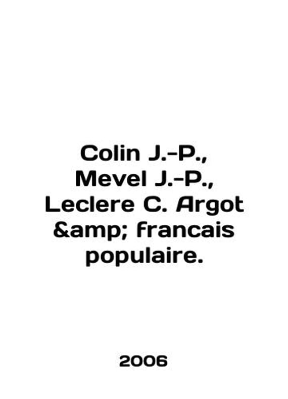 "Colin J.-P., Mevel J.-P., Leclere C. Argot francais populaire. In English /Colin J.-P., Mevel J.-P., Leclere C. Argot & francais populaire. Paris. Larousse. 2006. 976c. We have thousands of titles and often several copies of each title may be available. Please feel free to contact us for a detailed description of the copies available. SKUalbaab147e603e7a66c."