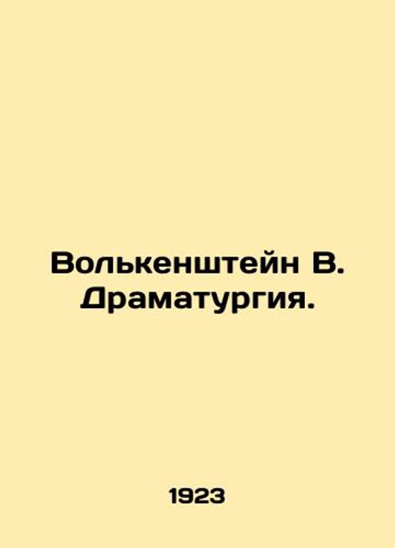 Volkenstein V. Drama. In Russian /Volkenshteyn V. Dramaturgiya. The Method of Investigation of Dramatic Works in New Moscow 1923. We have thousands of titles and often several copies of each title may be available. Please feel free to contact us for a detailed description of the copies available. SKUalbaab4d5c3f4a9cdd0.
