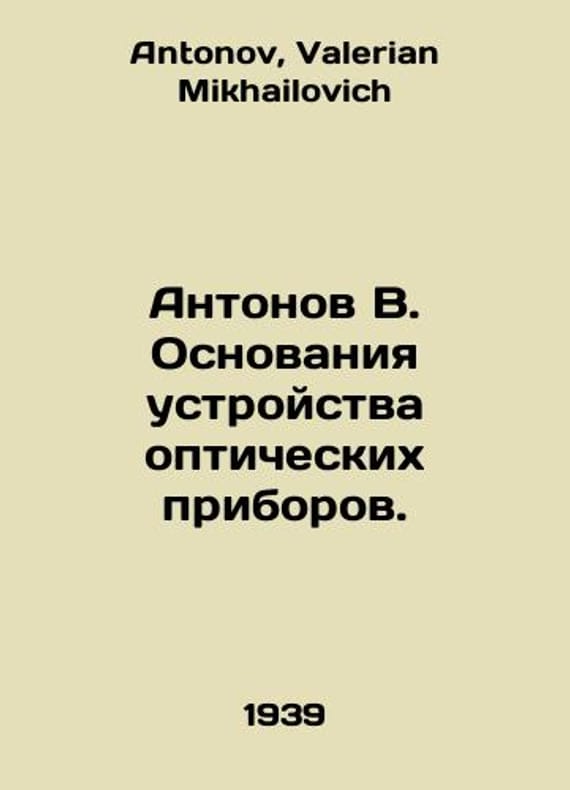 Antonov V. Foundations of an Optical Device Device. In Russian /Antonov V. Osnovaniya ustroystva opticheskikh priborov. 1939. 152 p. We have thousands of titles and often several copies of each title may be available. Please feel free to contact us for a detailed description of the copies available. SKUalbab01de782fc0b03f.