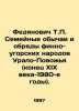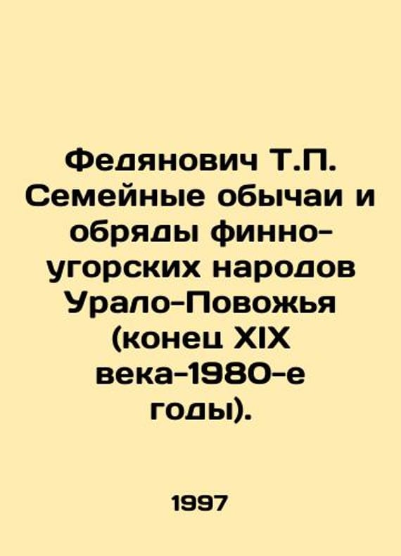 Fedyanovich T.P. Family customs and rituals of the Finno-Ugric peoples of the Ural-Povozhya (late nineteenth century-1980s). In Russian /Fedyanovich T.P. Semeynye obychai i obryady finno-ugorskikh narodov Uralo-Povozhya (konets XIX veka-1980-e gody). Series: Peoples of Russia. M. Miklukho-Maklai Institute of Ethnology and Anthropology. 1997. 183 p. We have thousands of titles and often several copies of each title may be available. Please feel free to contact us for a detailed description of the copies available. SKUalbab8bf224e8532c12.