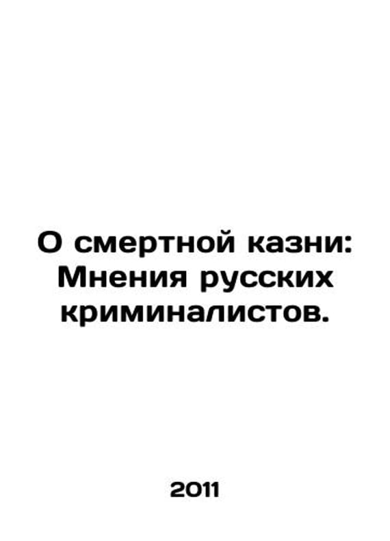 On the Death Penalty: Opinions of Russian Criminologists. In Russian /O smertnoy kazni: Mneniya russkikh kriminalistov. Reprint of the 1909 edition. M. Regional Civic Initiative. 2011. We have thousands of titles and often several copies of each title may be available. Please feel free to contact us for a detailed description of the copies available. SKUalbaba8cf9aabd7f38b.