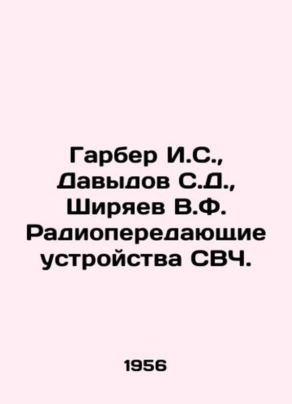 Garber I.S., Davydov S.D., Shiryaev V.F. Microwave radio transmitters. In Russian /Garber I.S., Davydov S.D., Shiryaev V.F. Radioperedayushchie ustroystva SVCh. The Artillery Order of the Patriotic War Radiotechnical Academy of the Soviet Army named after Marshal Govorov L.A. ARTA 1956. 432 pp. We have thousands of titles and often several copies of each title may be available. Please feel free to contact us for a detailed description of the copies available. SKUalbabb4427f3eaa4371.