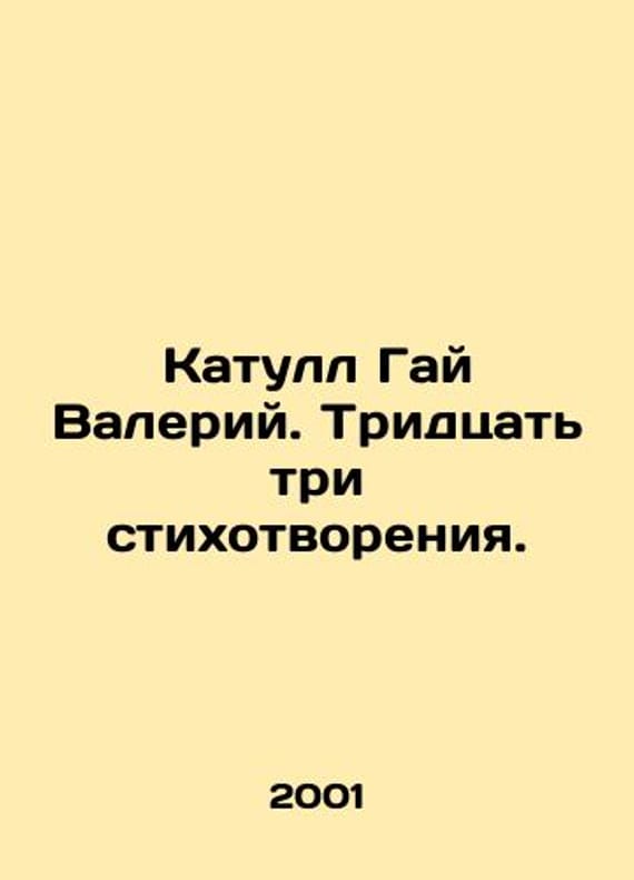 Catullus Guy Valery. Thirty-three poems. In Russian /Katull Gay Valeriy. Tridtsat tri stikhotvoreniya. Translated by Rachel Torpusman. Artist Zeliy Laukhov. Jerusalem. Philobiblon 2001. 92 p. We have thousands of titles and often several copies of each title may be available. Please feel free to contact us for a detailed description of the copies available. SKUalbabbe2da8279f7e39.
