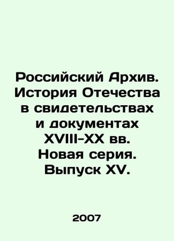 The Russian Archive. The History of the Fatherland in the Certificates and Documents of the 18th-20th Centuries. New Series. Issue XV. In Russian /Rossiyskiy Arkhiv. Istoriya Otechestva v svidetelstvakh i dokumentakh XVIII-XX vv. Novaya seriya. Vypusk XV. M. Russian Fund of Culture 2007 592 p. We have thousands of titles and often several copies of each title may be available. Please feel free to contact us for a detailed description of the copies available. SKUalbabe8e1350ccced8b.