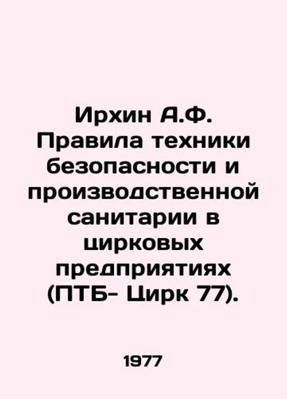 Irkhin A.F. Circus Safety and Health Regulations (PTB-Circus 77). In Russian /Irkhin A.F. Pravila tekhniki bezopasnosti i proizvodstvennoy sanitarii v tsirkovykh predpriyatiyakh (PTB- Tsirk 77). M. Advertising. 1977. 332s. We have thousands of titles and often several copies of each title may be available. Please feel free to contact us for a detailed description of the copies available. SKUalbac0020b788e7683a.