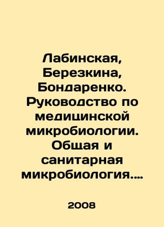 Labinskaya, Berezkina, Bondarenko. Guide to Medical Microbiology. General and Sanitary Microbiology. Book 1. In Russian /Labinskaya, Berezkina, Bondarenko. Rukovodstvo po meditsinskoy mikrobiologii. Obshchaya i sanitarnaya mikrobiologiya. Kniga 1. Binom. 2008. 1080 p. We have thousands of titles and often several copies of each title may be available. Please feel free to contact us for a detailed description of the copies available. SKUalbac442ae7e10b8cbd.