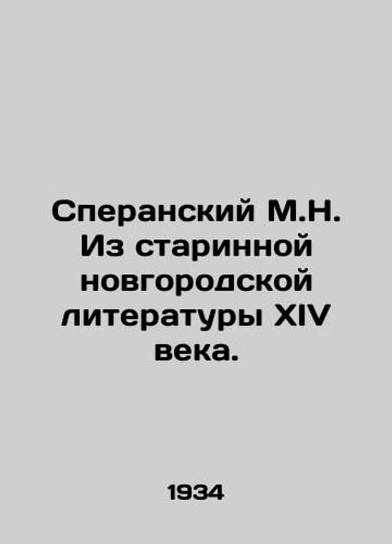 M.N. Speransky From ancient Novgorod literature of the fourteenth century. In Russian /Speranskiy M.N. Iz starinnoy novgorodskoy literatury XIV veka. Monument to Ancient-Russian Literature, Issue 4. L., Academy of Sciences of the USSR, 1934. 140 p. We have thousands of titles and often several copies of each title may be available. Please feel free to contact us for a detailed description of the copies available. SKUalbac5a68d1b30f8ff7.