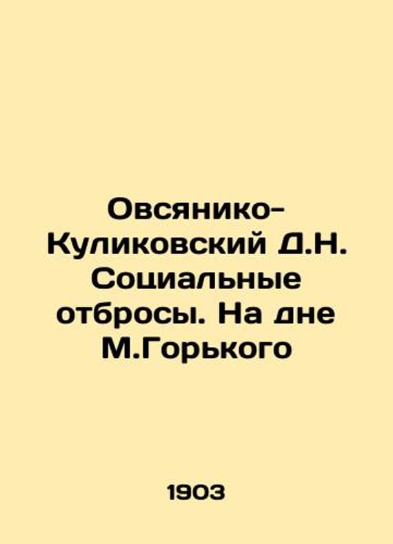 Ovsyaniko-Kulikovsky D.N. Social scum. At the bottom of M.Gorky In Russian /Ovsyaniko-Kulikovskiy D.N. Sotsialnye otbrosy. Na dne M.Gorkogo Kharkiv Elektroprint of Kharkiv Leaf 1903. We have thousands of titles and often several copies of each title may be available. Please feel free to contact us for a detailed description of the copies available. SKUalbacaf4f672104687c.