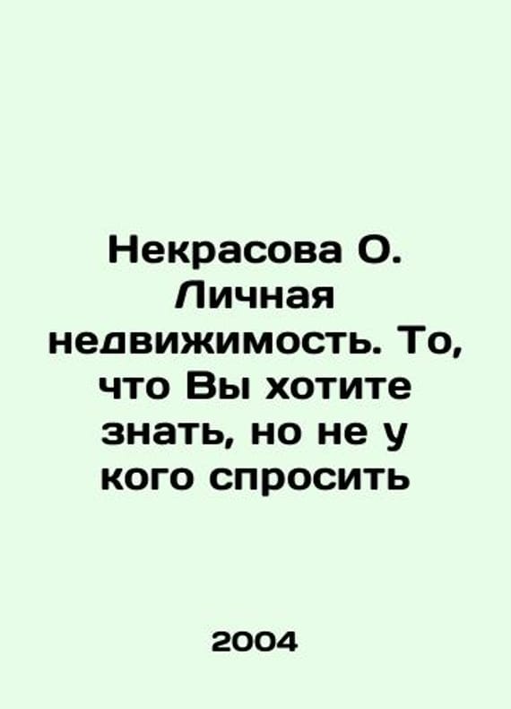 Nekrasova O. Personal real estate. What you want to know but no one to ask In Russian /Nekrasova O. Lichnaya nedvizhimost. To, chto Vy khotite znat, no ne u kogo sprosit Wolters Kluwer 2004. 192 p. We have thousands of titles and often several copies of each title may be available. Please feel free to contact us for a detailed description of the copies available. SKUalbacb47b4a532e0837.
