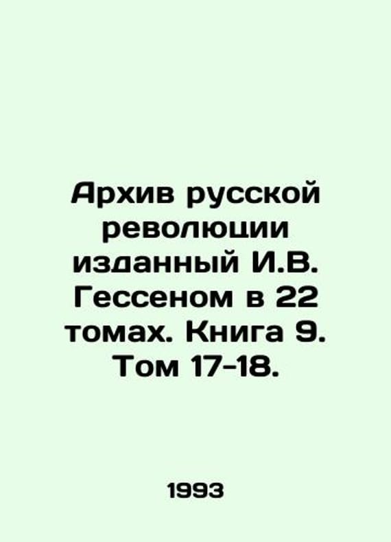Archive of the Russian Revolution published by I.W. Hessen in 22 volumes. Book 9. Volumes 17-18. In Russian /Arkhiv russkoy revolyutsii izdannyy I.V. Gessenom v 22 tomakh. Kniga 9. Tom 17-18. Series: Russian Archives. Moscow. Terra. 1993. 318 p. We have thousands of titles and often several copies of each title may be available. Please feel free to contact us for a detailed description of the copies available. SKUalbacf92b8efbc6e2c0.