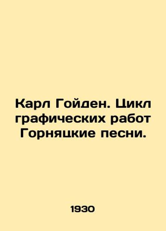 Carl Goyden. The cycle of graphic works Miners songs. In Russian /Karl Goyden. Tsikl graficheskikh rabot Gornyatskie pesni. Rutek Alliance, b.y., 1c., 9 or 5 sm. We have thousands of titles and often several copies of each title may be available. Please feel free to contact us for a detailed description of the copies available. SKUalbad065de9f3795693.