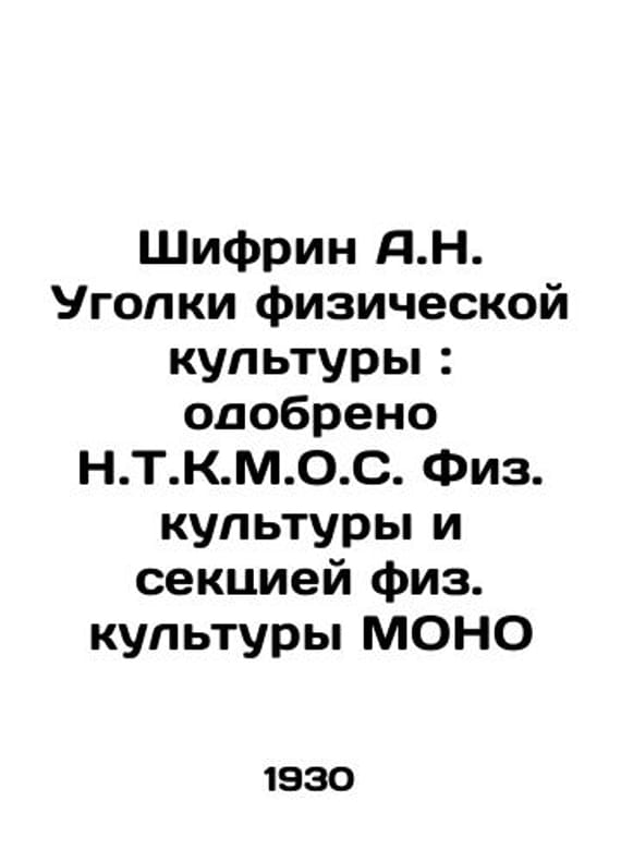 Shifrin A.N. Corners of Physical Education: Approved by the N.T.K.M.O.S. Physical Education and the Physical Education Section of the MONO In Russian (ask us if in doubt)/Shifrin A.N. Ugolki fizicheskoy kultury: odobreno N.T.K.M.O.S. Fiz. kultury i sektsiey fiz. kultury MONO. Moscow Educator. 1930. 88 p. SKUalbad68ff00c841af6c.