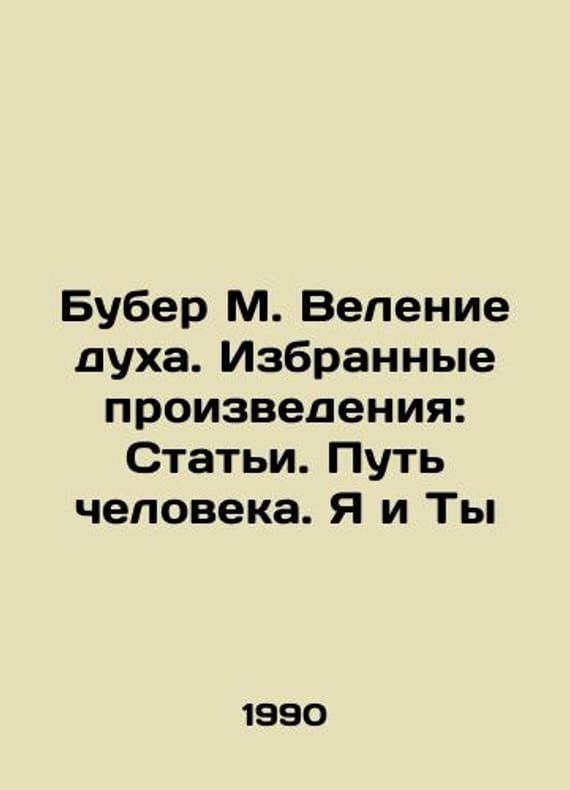 Bouber M. The Command of the Spirit. Selected Works: Articles. The Way of Man. Me and You In Russian /Buber M. Velenie dukha. Izbrannye proizvedeniya: Stati. Put cheloveka. Ya i Ty Ed. Jerusalem, R. Portnoy Publishing House 1990, 288 p. We have thousands of titles and often several copies of each title may be available. Please feel free to contact us for a detailed description of the copies available. SKUalbad846088fcdb3895.
