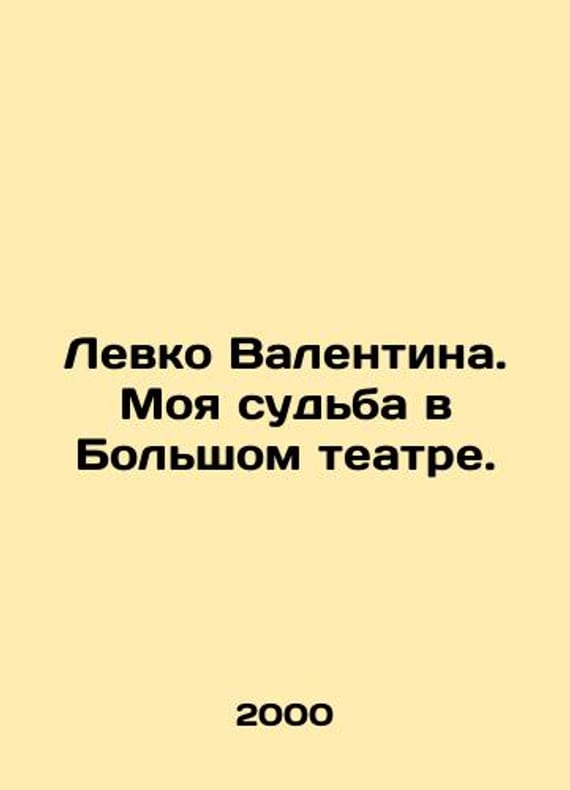 Levko Valentina. My fate is in the Bolshoi Theatre. In Russian /Levko Valentina. Moya sudba v Bolshom teatre. Vladimir Foliant 2000. 240 pp. We have thousands of titles and often several copies of each title may be available. Please feel free to contact us for a detailed description of the copies available. SKUalbad9ce0c78f02bd83.