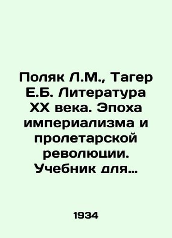 Pole L.M., Tager E.B. Literature of the twentieth century. The Age of Imperialism and the Proletarian Revolution. A textbook for pedagogical schools. In Russian /Polyak L.M., Tager E.B. Literatura KhKh veka. Epokha imperializma i proletarskoy revolyutsii. Uchebnik dlya pedagogicheskikh tekhnikumov. Editor Florinsky S.M. -L. State Educational-pedagogical Publishing House. 1934. We have thousands of titles and often several copies of each title may be available. Please feel free to contact us for a detailed description of the copies available. SKUalbadad4384373b13f2.