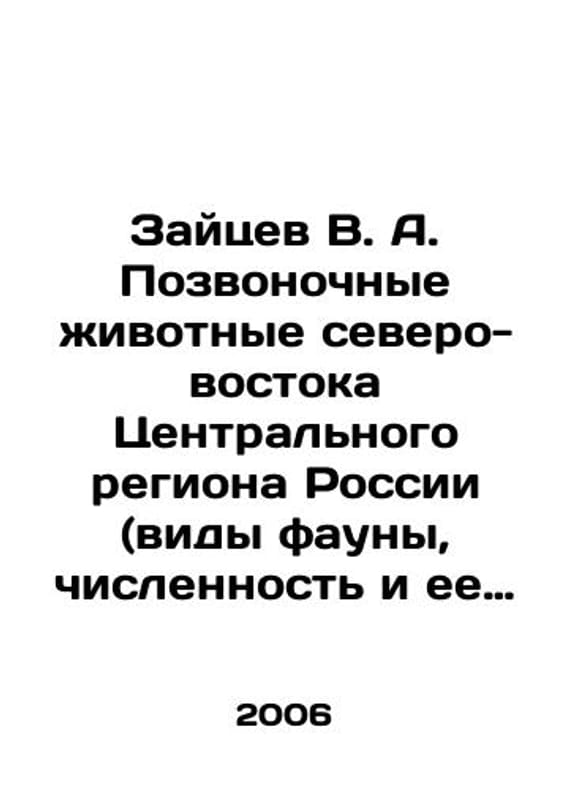 Zaitsev V. A. Vertebrates of the Northeast Central Region of Russia (species of fauna, population and changes in it). In Russian /Zaytsev V. A. Pozvonochnye zhivotnye severo-vostoka Tsentralnogo regiona Rossii (vidy fauny, chislennost i ee izmeneniya).M. Partnership of Scientific Publications of KMK 2006.We have thousands of titles and often several copies of each title may be available. Please feel free to contact us for a detailed description of the copies available. SKUalbadce2dfa0fc5a7d8.